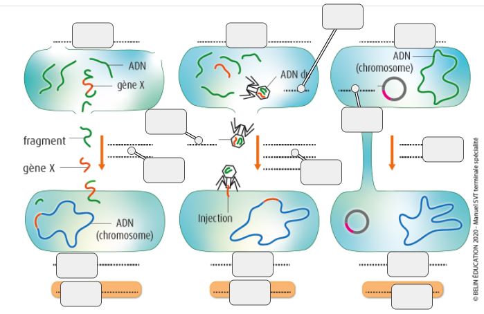 - transformation : intégration d’ADN présent dans l’environnement ;